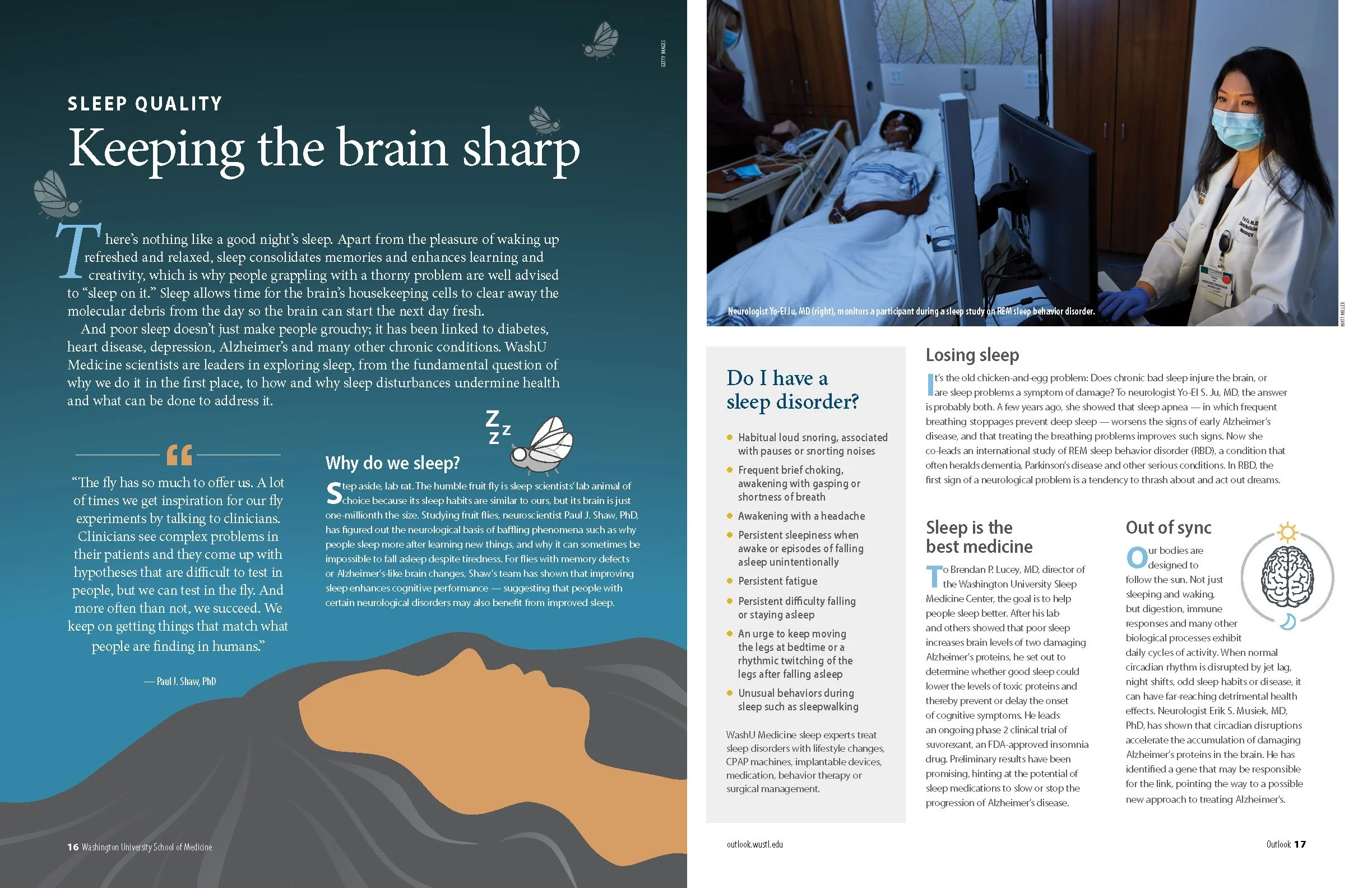 Since its launch in 1964, Outlook magazine has showcased the research, clinical care, educational and service initiatives of Washington University School of Medicine in St. Louis. I have had the privilege of designing and producing this historic magazine from print to web since 2016. Below are some case studies explaining an issue and their complexities.